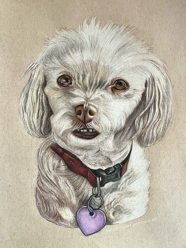 Each portrait is drawn entirely by hand using coloured pencils on premium art paper. These pieces are created with love, time, and care, designed to capture your pet’s unique expression, personality, and presence, not just “what they look like.”